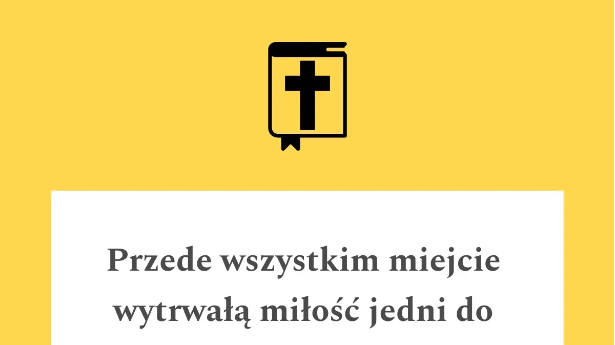 Przede wszystkim miejcie wytrwałą miłość jedni do drugich, bo miłość zakrywa wiele grzechów. Okazujcie sobie wzajemną gościnność bez szemrania.